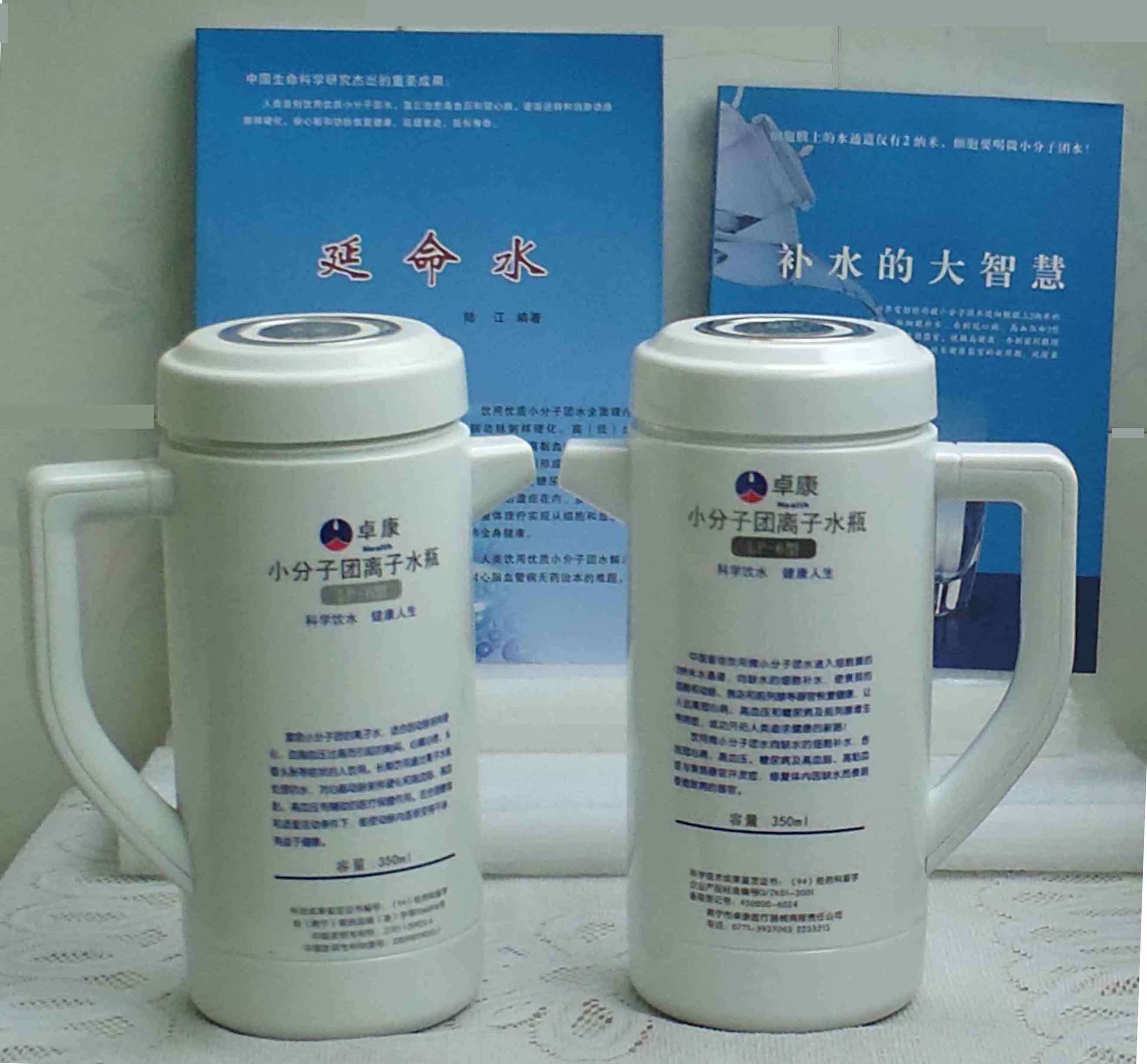 本品大量用戶的使用效果表明,能治愈冠心病、腦動脈硬化、原發(fā)性高(低)血壓、高血脂、高粘血癥、高血尿酸癥(痛風)和2型糖尿病、衰弱器官并發(fā)癥(前列腺增生、腎衰與尿毒癥)及中風后遺癥等療效好。產(chǎn)品配信譽卡。使用壽命30年,不換芯,易清洗。團購優(yōu)惠。從郵局匯款,匯費1%,地址按本頁下方地址、聯(lián)系人寫。從銀行匯款,請點擊[聯(lián)系匯款]欄,從工商銀行匯款,建設(shè)銀行、農(nóng)業(yè)銀行匯款,均免收匯費,匯款后20--30分鐘內(nèi)發(fā)短信,可用微信轉(zhuǎn)帳,均免匯費,微信號即手機號13768308380。匯款后,告知你的姓名和地址,我公司聯(lián)系人手機號是:13768308380。卓康牌離子水瓶為我公司獨家生產(chǎn),郵購產(chǎn)品配《補水的大智慧》彩印書一本,另配四季出版社出版的新書《補水的大智慧》一本,并配光盤一張(含央視主持人釆訪陸江的對話視頻)。目前市場和"淘寶網(wǎng)"上有人兜售假冒的偽品,望讀者審察辯別真?zhèn)危旒僬哓飧`假冒本公司的各種認證、獲獎獎項、專利號和外包裝盒上的中英文字,包括科技成果的鑒定意見等,請讀者注意防偽。如何識別假貨?已經(jīng)買了假貨怎么辦?(請點擊[打假掠影][打假掠影])。